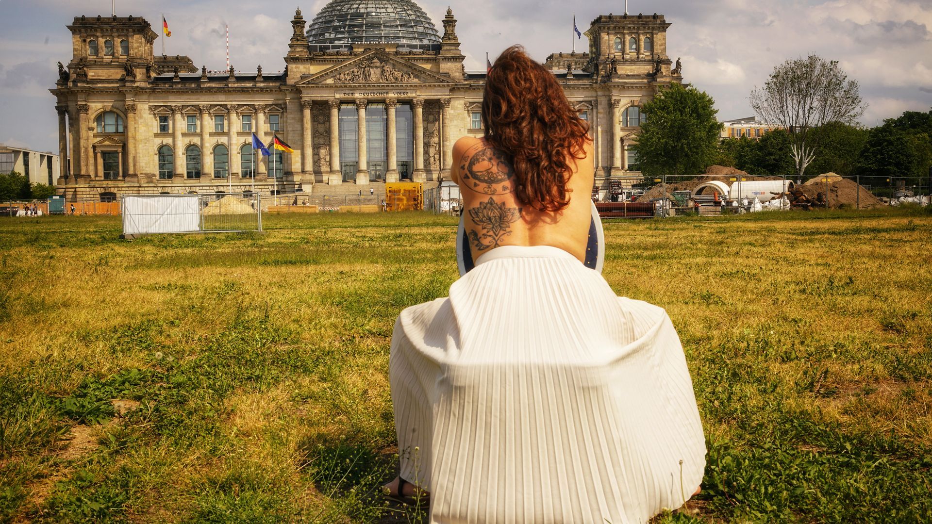 Dort entstanden Portraits (hier Auswahl) der TeilnehmerInnen - auf einem Stuhl des Parlaments sitzend - mit dem Blick auf den Bundestag. Die Bilder werden Teil des Buches